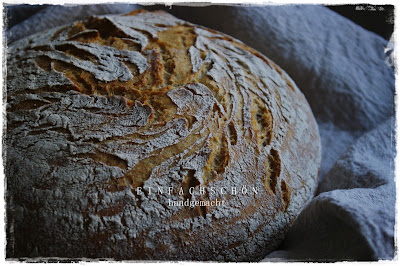 Manche Dinge bleiben einfach immer gut und ich kann nicht mehr davon lassen. Einen herrlich duftenden Brotlaib aus dem Ofen zu ziehen, ist und bleibt Vergnügen pur ... für alle Sinne. Aussehen, Geruch, das leise Knistern der heißen Kruste, Haptik und nicht zuletzt der Geschmack sind Argumente genug, um immer wieder neu ans Werk zu gehen. Ab und an ändern sich die Vorlieben der Familie. Derzeit sind die Runden wieder sehr gefragt. Und vor allem die mit Dinkel und Emmer gebackenen Brote brauchen nicht lang zu warten, bis sie bis aufs letzte Krümelchen verspeist sind.