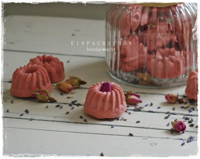 ooohh wie süss und lecker diese kleinen minigugelhupfe sind,ich bade auch gern,und sowas wäre mal ein hihglight,schon alleine weil ich rose und lavendel sehr gern riche,himmlisch auch die andren seifen,leider hab ich mich da noch nicht ran gewagt,sollte ich das mal machen?